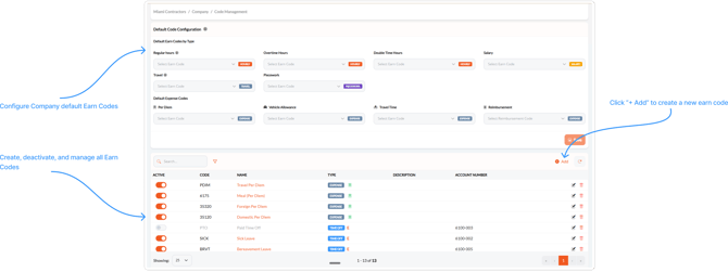 Earn Codes is a centralized code management module that lets you define how hours, time off, travel, piecework, and expenses map to your payroll and accounting systems. Instead of managing PTO Reasons and Expense Codes separately across different pages, admins now manage everything from a single Code Management page. This ensures consistent payroll mappings across all shifts, PTO entries, and expense transactions.