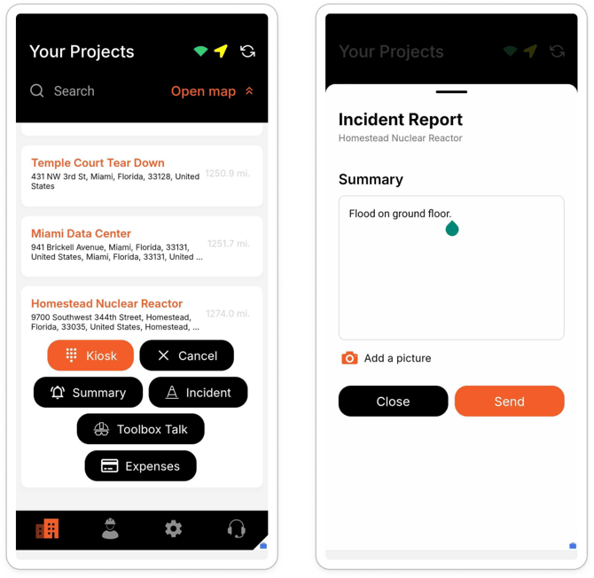 - Mobile app — Workers submit an incident directly through the app, including notes and photos. This must be enabled via Company Settings → Mobile App → Enable Incident, and can be overridden per worker under Worker Profile → Mobile Settings.