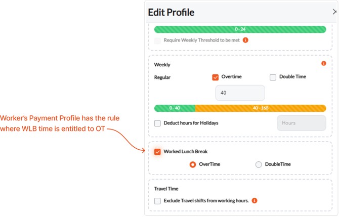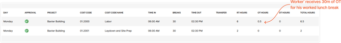 If your Payment Profile has a worked-lunch-break OT or DT rule, here's how it works when the checkbox is checked: