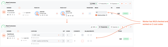 ℹ️If a worker has multiple productivity rows with the same amount of hours, the premium portion from the worked lunch break will apply to the first productivity row of their shift.