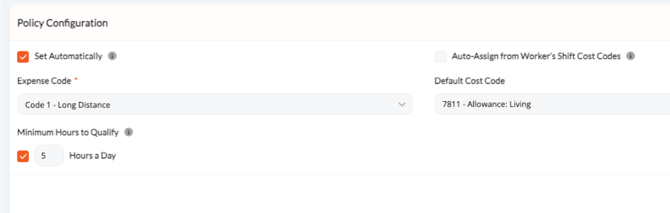- Uses the Cost Code assigned to the worker’s shift and applies it to the Per Diem (cannot be overridden).