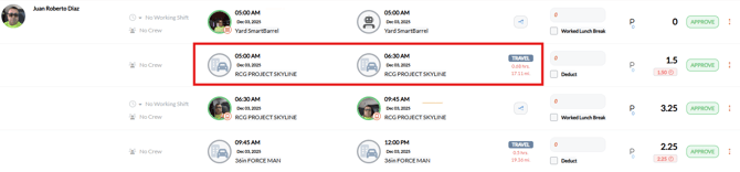 - If a worker travels across multiple projects or sites during the day, the system will create a travel shift for each depending on each project settings.