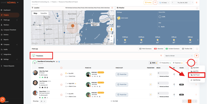 This option is helpful when a worker travels to multiple sites and the travel time was not recorded. Users with the proper permissions can manually add the travel time.