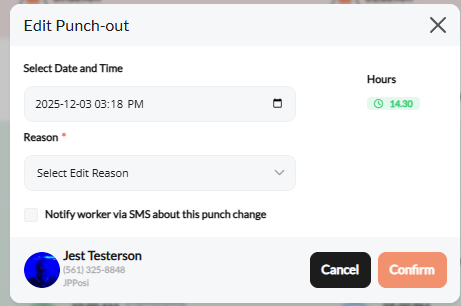 Step 2. Select worker, shift date, time, edit reason and click "Create"